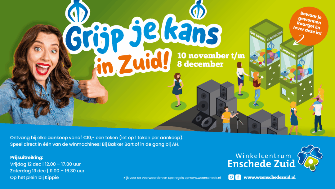 Bij Winkelcentrum Enschede Zuid omarmen we het Twentse noaberschap. We creëren samen een bruisende locatie in het hart van Enschede Zuid. Met trots presenteren we een veelzijdig en compleet winkelaanbod dat garant staat voor een unieke shopervaring. Ons streven is duidelijk: het verbinden van mensen, het leveren van hoogwaardige service en het koesteren van een hechte gemeenschap. Onze bruisende passage biedt plaats aan meer dan 60 winkels, beschikt over ruim 700 parkeerplekken, een bewaakte fietsenstalling met gratis oplaadpunt, en is gemakkelijk te bereiken met het openbaar vervoer (lijn 2 en 508).