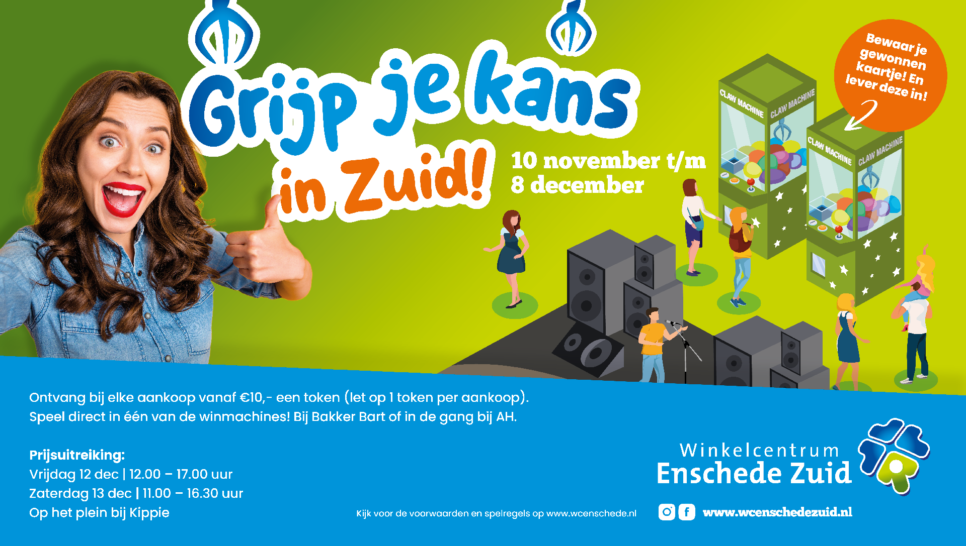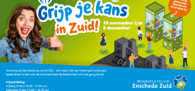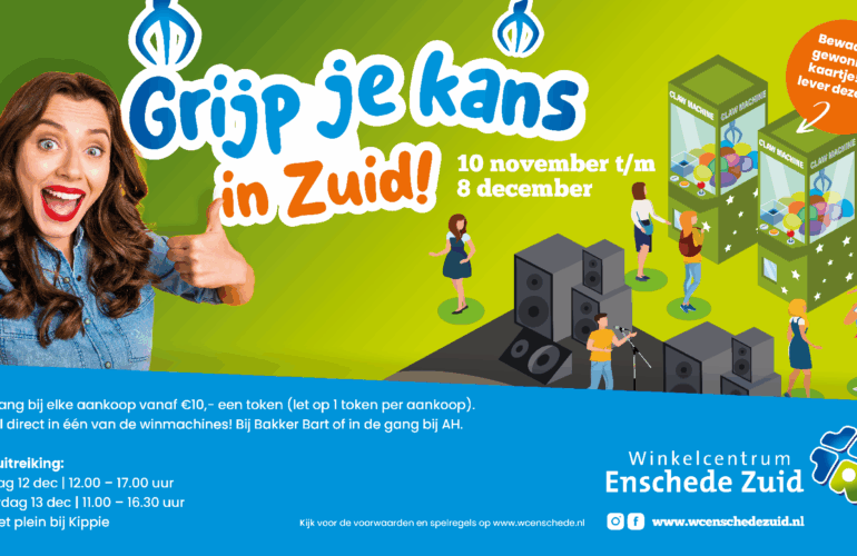 Na het succes van vorig jaar kun je dit najaar opnieuw je geluk beproeven, want de populaire winactie in Winkelcentrum Enschede Zuid keert terug! De actie ‘Grijp je kans!’ was vorig jaar een groot succes, en ook dit jaar maken bezoekers van het winkelcentrum weer kans op geweldige prijzen samen t.w.v. € 20.000!