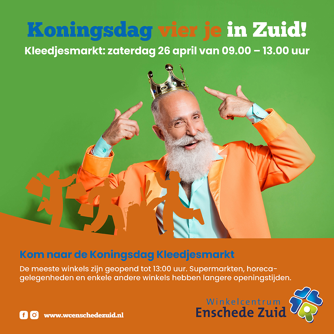 Op zaterdag 26 april vieren we Koningsdag in Enschede Zuid – en dat doen we natuurlijk met een gezellige kleedjesmarkt! Heb jij nog speelgoed, boeken of andere spulletjes die een tweede leven verdienen? Of kom je liever gewoon lekker rondneuzen? Iedereen is welkom!